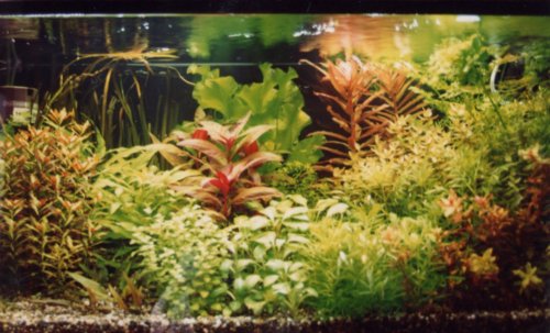 水 槽:90×45×45 コトブキ工芸 ガラス製 照 明:30W×2 15W×4 10時間/day ろ 過: FLUVAL403+コトブキ工芸 底面フィルター ろ 材:エーハイメック+EHIMEサブストラクト 底 床: 南国砂+テトラ イニシャルD(底床添加肥料) 液 肥:テトラ フローラプライド CO2 :1滴/秒 換 水:週に一度1/2 |