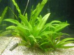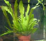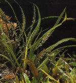 クリプトコリネ・バランサエ Cryptocoryne balansae 丈夫で美しい細葉のクリプトコリネの代表種。細長いリボン状の葉に細かいウェーブが入る美しい品種である。繁殖はランナーによって行われるが、年に数本と極めて遅い。市販品は数タイプあるのか、多種が混ざっているようである。 |