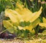 ラジカンス Echinodorus cordifolius 大きなハート型の葉は20センチにも達する。そのため90センチクラスの水槽が必要である。また、強い光と十分な肥料が必要である。水中でも不定芽をつける。これにより繁殖は容易である。 小型変種化したコーディフォリスミニもある。 |