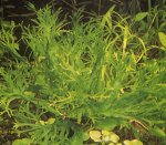 ミクロソリウムウィンデロブ Microsorium pteropus "Windelov" ミクロソリウムの変異種。育成自体は普通種と同様である。岩や流木に活着させて育てるのに適している。栽培は難しくないが成長が遅いため、こけの付着に注意する必要がある。また、高温には弱い所がある。最近は通常種よりも多く見られる。 |